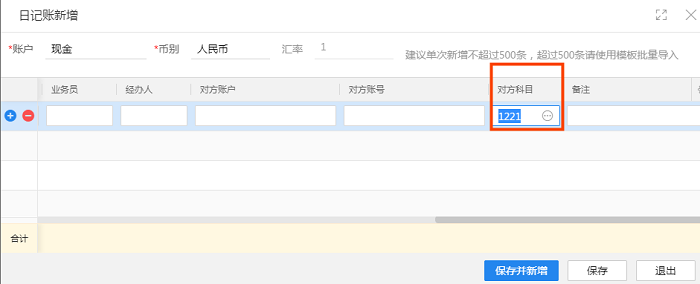 出纳日记账生成凭证的对方科目,通过出纳日记账界面添加。