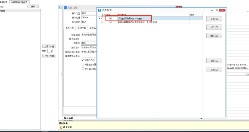 BOS中操作列表,删除操作的这个控制取消勾选