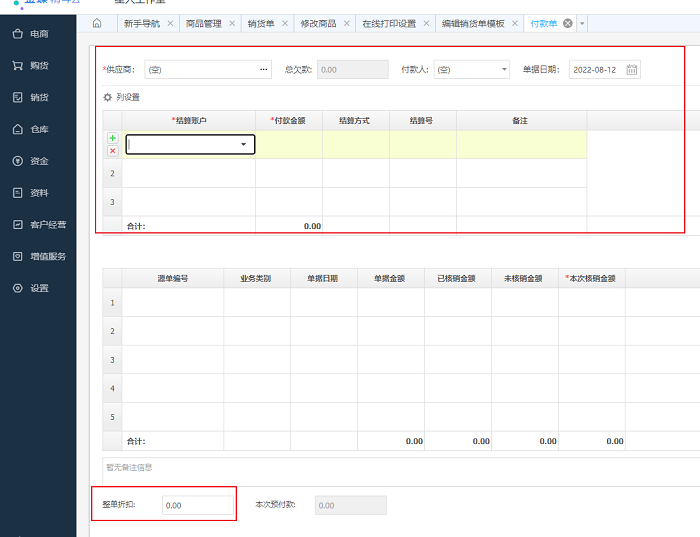 如果是进销存的话。做付款单-整单优惠核销应付账款就可以了