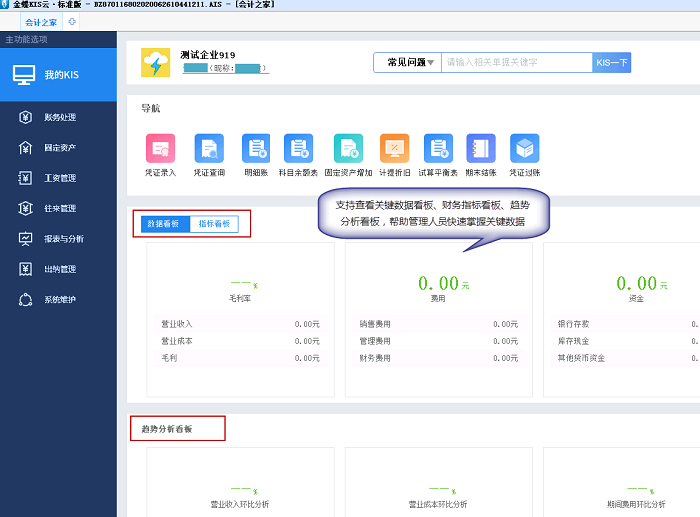 4.  关键财务数据看板:支持查看数据、指标看板,帮助企业管理人员快速掌握当前企业财务状况,让企业管理更高效!
