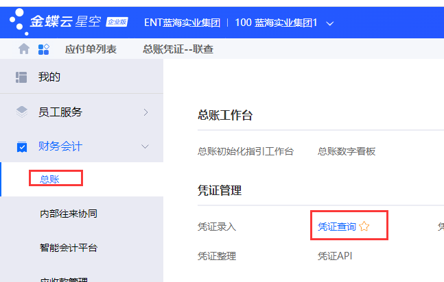 可以在应付单列表界面,依次单击【凭证】→【查看总账凭证】,在“总账凭证—联查”即可删除凭证,如下图所示。