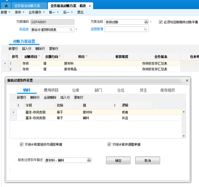 1.如果按存货类别区分不同科目,凭证模板科目影响因素设置了科目与存货类别的对照关系,则对账对账方案设置需要和科目影响因素设置一致;