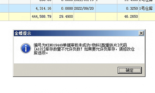 K3软件蓝字外购入库单审核报错:XX物料XX仓库负库存,审核不成功