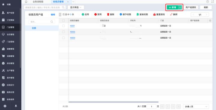登录零售后台, 前往《门店管理 - 设置 - 收银员管理》, 为配送员创建收银员账号, 并分配至对应的门 店。配送员接单范围为其所分配的线下门店可以管理的商城订单。