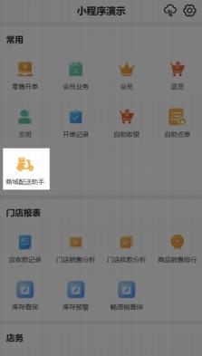使用上⼀步创建的收银员账号, 登录手机POS, 前往《设置 - 常用功能管理》, 找到 打开开关启用该功能, 返回首页即可看到商城配送助手功能菜单。