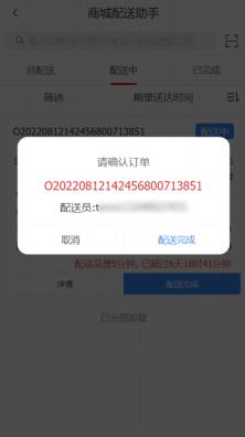 2. 点击【配送完成】 或者使用扫码功能扫描订单条码标记订单状态,将订单状态标记为