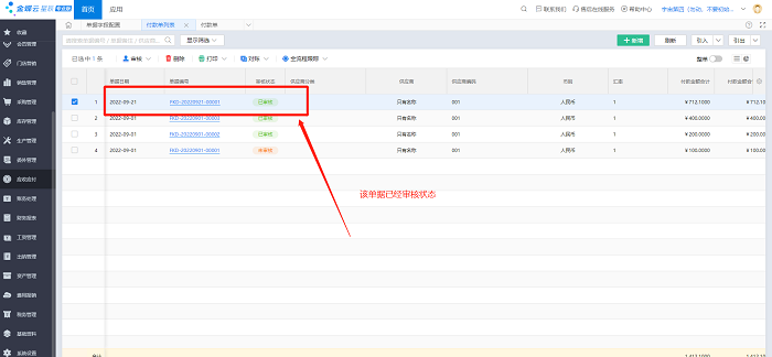 2)做好一张付款单,正常流程下推【审核】