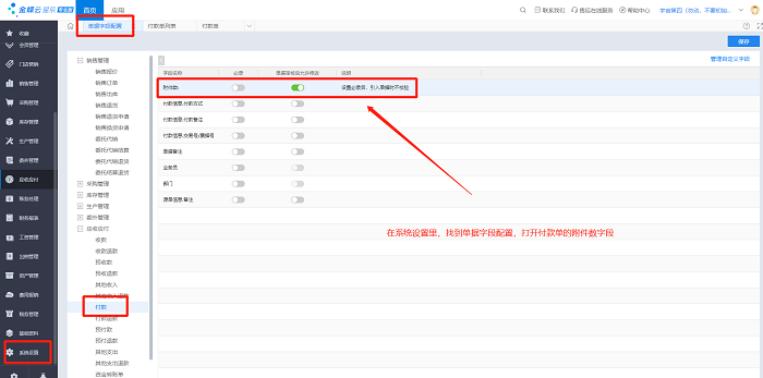 1)单击【系统设置】→【单据字段配置】→【字段:附件数-单据审核后允许修改】