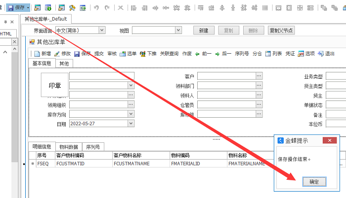 其他出库单,领料部门选择基本生产属性时,单据体默认勾选:参加费用分配。
