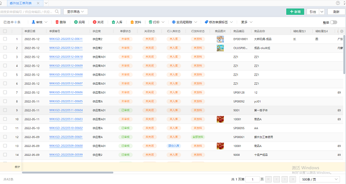 4、 委外加工单列表