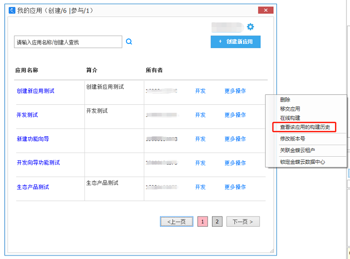 在菜单中选中“查看该应用的构建历史”,即可进入构建历史列表。