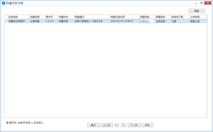 构建历史列表显示该应用的所有构建历史信息,包括本地构建和云端构建。包括每次构建的构建报告、质量报告及安装包的下载。