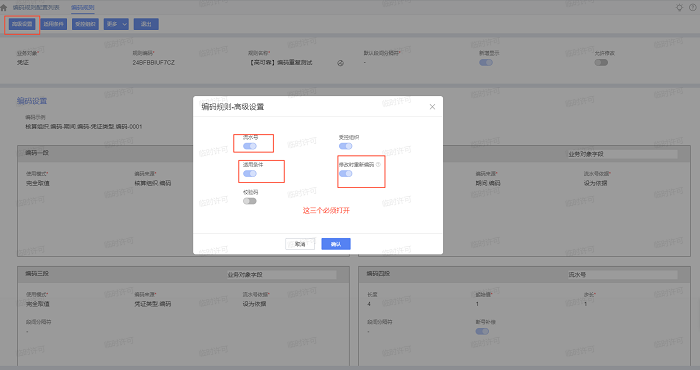 高级设置 如图所示三项必须打开 受控组织:这个编码规则适用于哪些组织 如果是所有组织用一套编码规则,这个设置就不用开启。