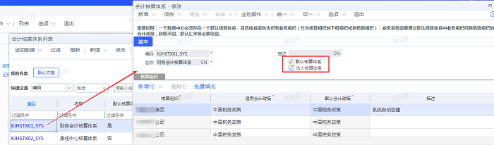 默认核算体系:所有启用业务模块的组织都要设置为默认会计核算体系的下级组织,业务组织采用默认核算体系下该组织的上级核算组织的会计政策。
