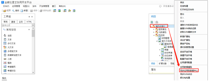 (1)、右键点击应用的根节点(应用名节点),选择同步应用到数据中心。如下图: