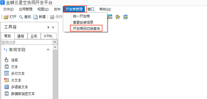 金蝶云星空应用的开发商码被切换后,如何查看