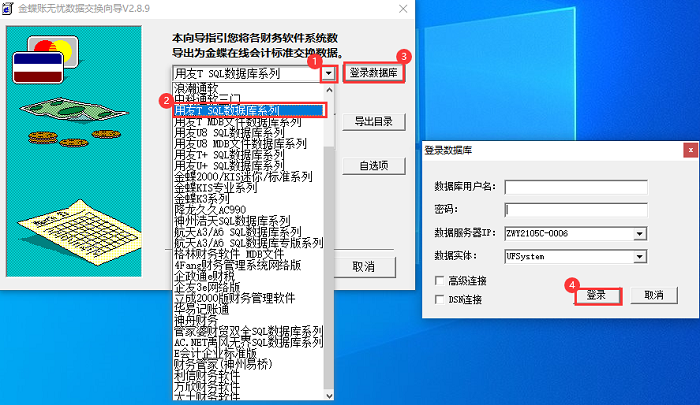 注:转换器必须安装在数据库电脑,因为用友T3账套转换必须在安装专业版的服务器电脑登录数据库才能转换