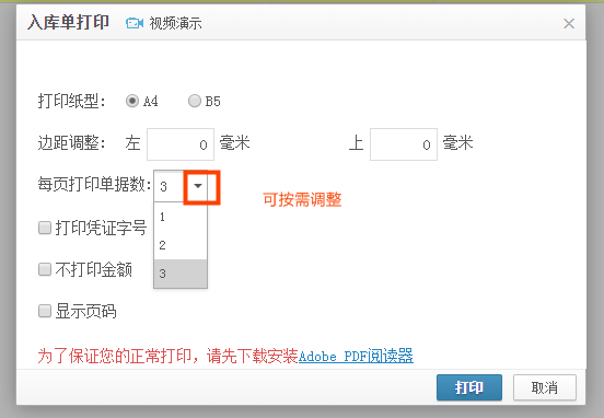 【操作步骤】:进入账簿,在【库存】-【入库单】页面勾上要打印的入库单,然后点【更多】下面的【打印】,选择打印纸型打印即可