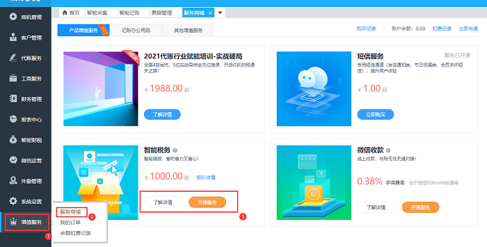 账无忧的报税功能是一项增值服务,需要额外充值后下载软件进行使用,请先查看对应地区是否有开放税种申报后在进行购买,请按下面的截图去查看对应的报价和购买的路径