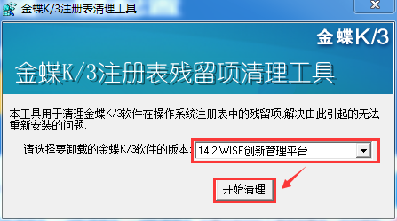 1、请访问以下地址http://k3help.kingdee.com/pages.php?id=4&userid=42&fileid=4&filenum=29984,将“K/3注册表清理工具”下载并解压,在“K/3注册表清理工具.exe”上右键选择【以管理员身份运行】/【打开】,在弹出的界面上选择相应K/3版本号,单击【开始清理】;