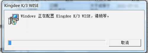 如图所示,客户端操作业务功能模块时,可能出现提示:Windows正在配置Kingdee K/3 WISE,请稍等。