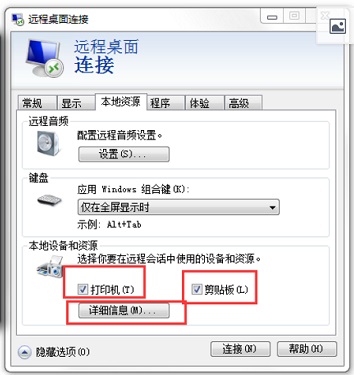 2、只要在mstsc的选项里面勾选连接本地驱动器,然后连接到终端服务,直接粘贴到服务器上即可
