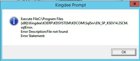 英文版K/3新建账套提示:Execute File.....\kingdee\k3erp\kdsystem\kdcom\SqlSrv\EN_SP_KSEV14.2SCM.sql Error