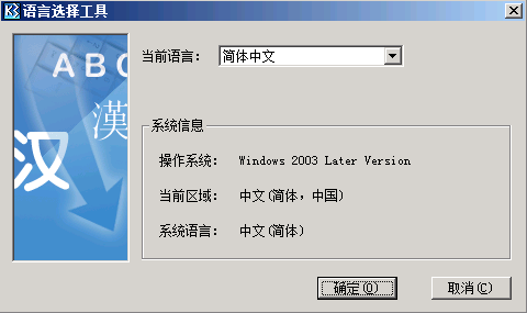 2、将“当前语言”切换为“简体中文”,确定后,重新打开账套管理即可。