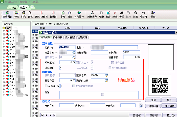 金蝶商贸版商品资料界面显示异常的处理办法
