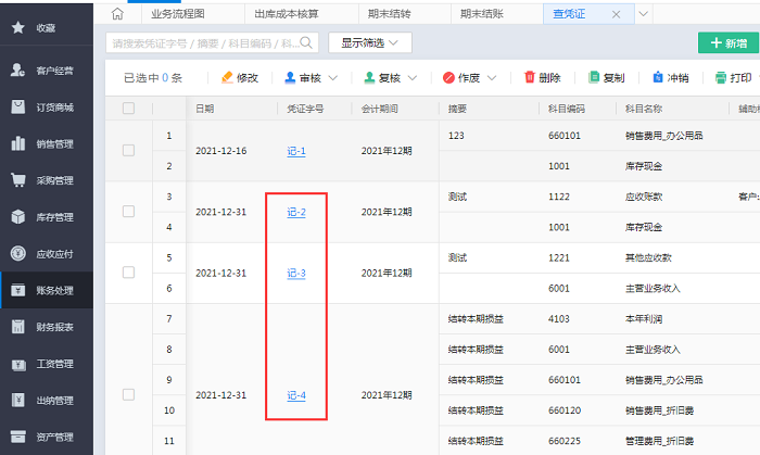 想要查询某个范围的凭证,该如何查询?比如:当前期间有1-6号凭证,要查询2-4号凭证。