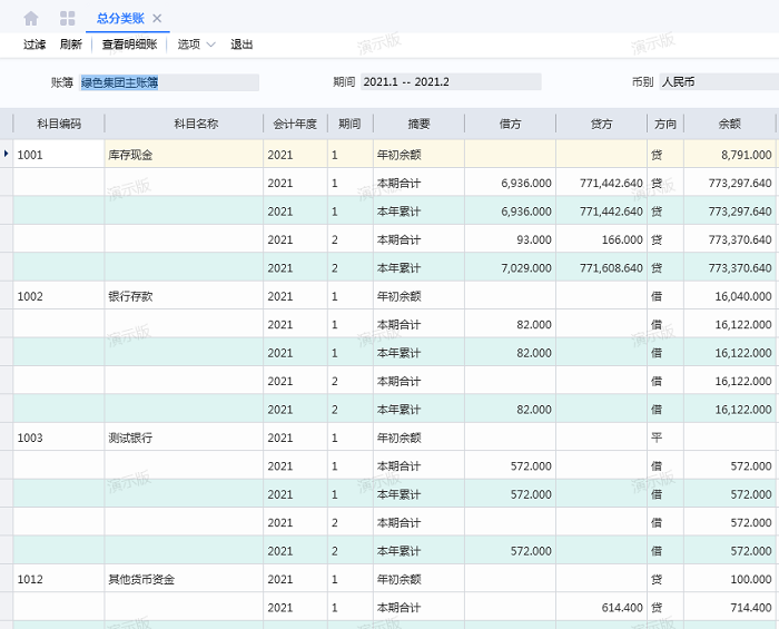 目前标准产品科目余额表取的是过滤条件所选期间范围内的合计数,无法分月显示每个月的数据,建议变通处理查询总分类账,查询多个期间时,可以分月显示每个期间的数据。