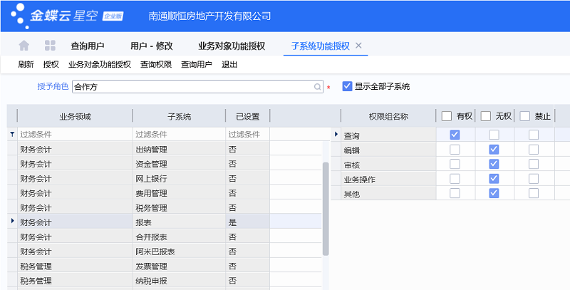 如何设置金蝶云星空中只有查看财务报表的权限