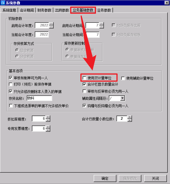 原因:系统参数-业务基础参数没有勾选【使用双计量单位】