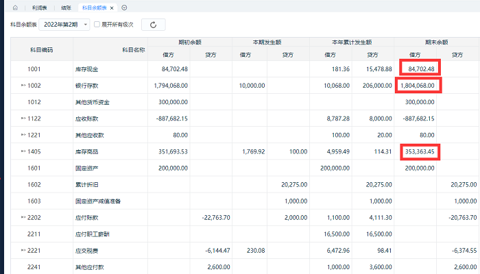 现金、银行存款、存货等科目: