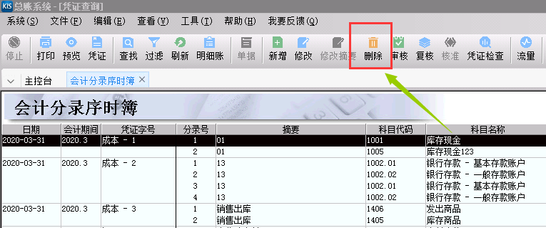 KIS旗舰版如何删除总账新增凭证