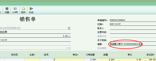 金蝶KIS云商贸版销售单的摘要想要显示为由销售订单单号--生成