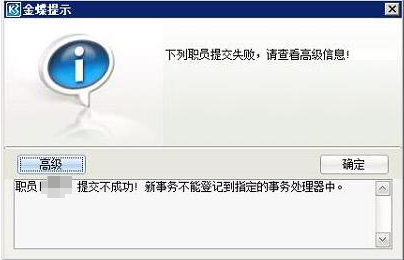 金蝶hr客户端提交人事事务提示:提交不成功!新事务不能登记到指定的事务处理器中。