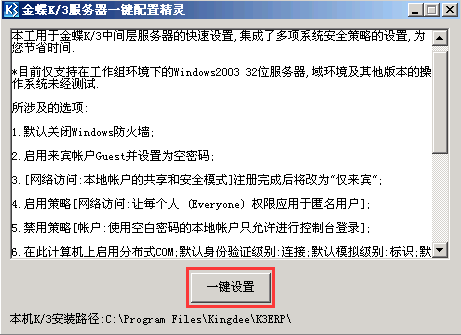 金蝶k3服务器一键配置精灵
