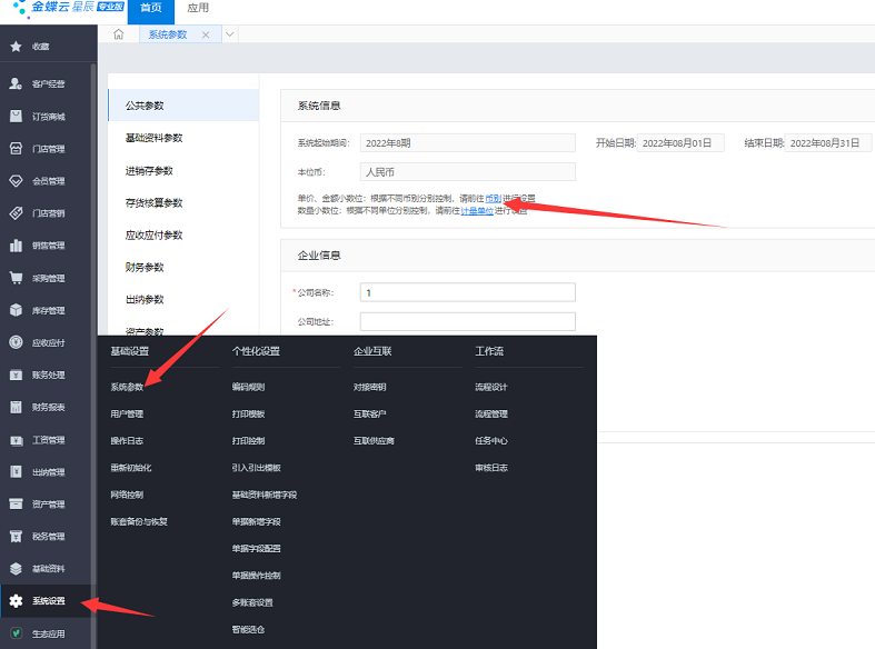 如何修改金蝶云星辰系统本位币