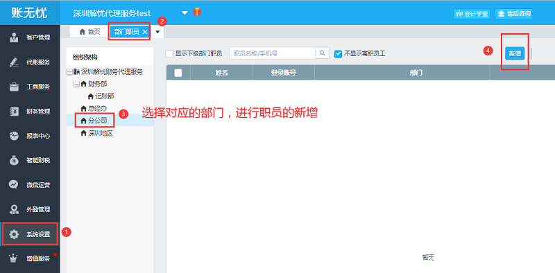 1、先在账无忧职员列表中添加职员