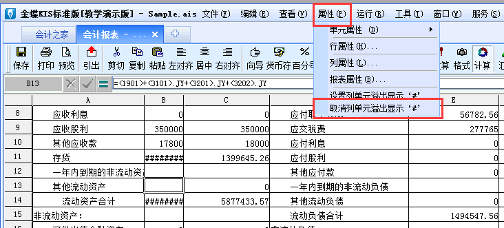 金蝶财务软件报表如何取消列单元溢出显示“#”?
