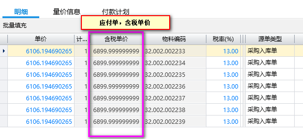 金蝶采购入库单下推应付单时,含税单价金额发生变化