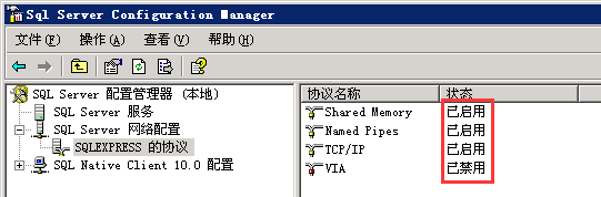 2、 服务器端SQL的TCP/IP协议被禁用(启用和禁用相应的协议并重启服务器电脑)