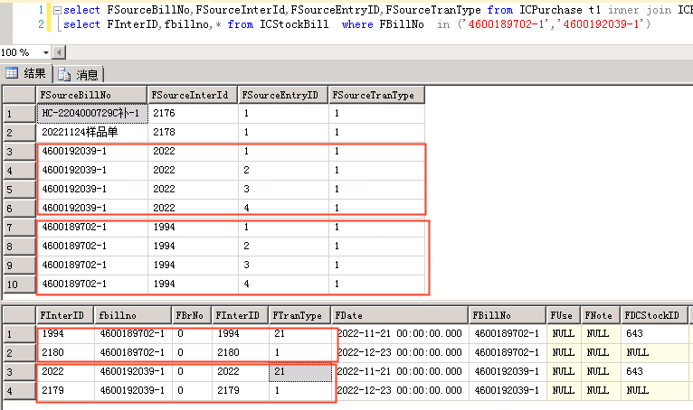 购货发票每一行都有源单单号和源单类型,但是有部分行上查无关联单据,部分行上查可以查到单据