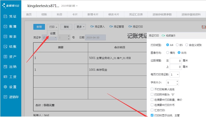 怎么设置精斗云在打印凭证时候需要在凭证上打印出纳的名字?