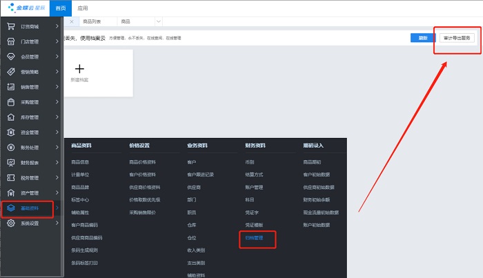 1、基础资料--归档管理使用右上角的审计导出工具可以将其进行导出