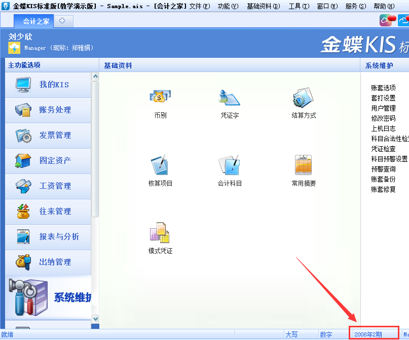 怎么查询kis标准/迷你版当前账套期间?