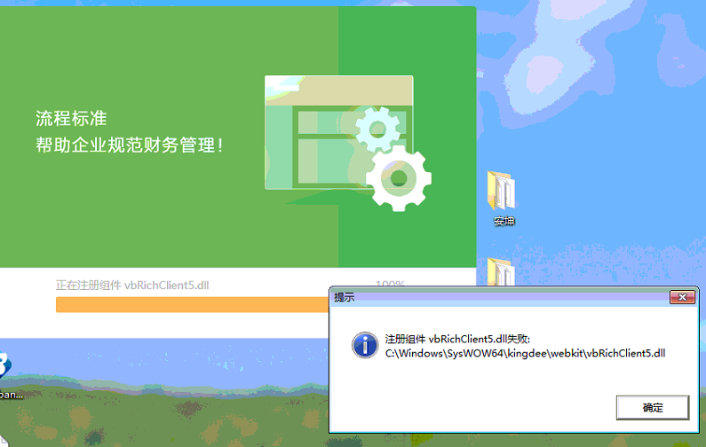 安装金蝶产品时提示:注册组件 vbRichClient5.dll失败?