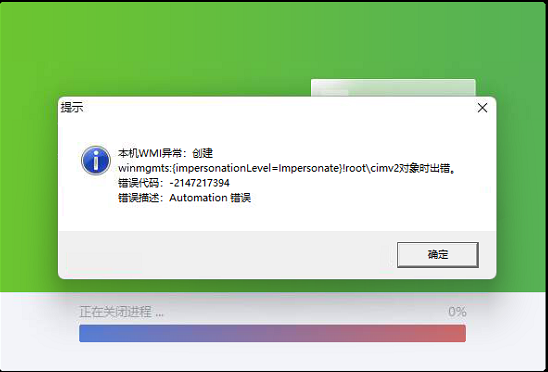 安装金蝶kis产品时提示:本机WMI异常:创建winmgmts:{impersonationLevel=Impersonate}Iroot\cimv2对象时出错。