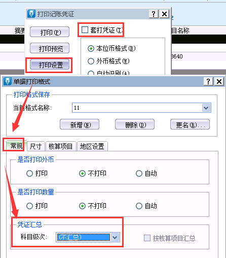 会计分录序时簿页面-点击[文件]-[打印凭证]-[打印设置]-[常规]-[凭证汇总]选择[不汇总]。